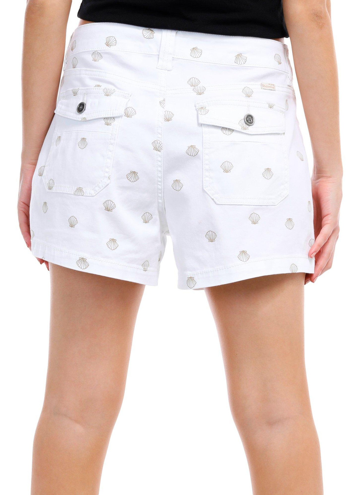These Delaney shorts feature a stylish design on lightweight stretch fabric, two front pockets, two back button-flap pockets, and fashionable seam detailing. The inseam measures approximately 3.5 in. Fabrication is 96% cotton and 4% spandex.