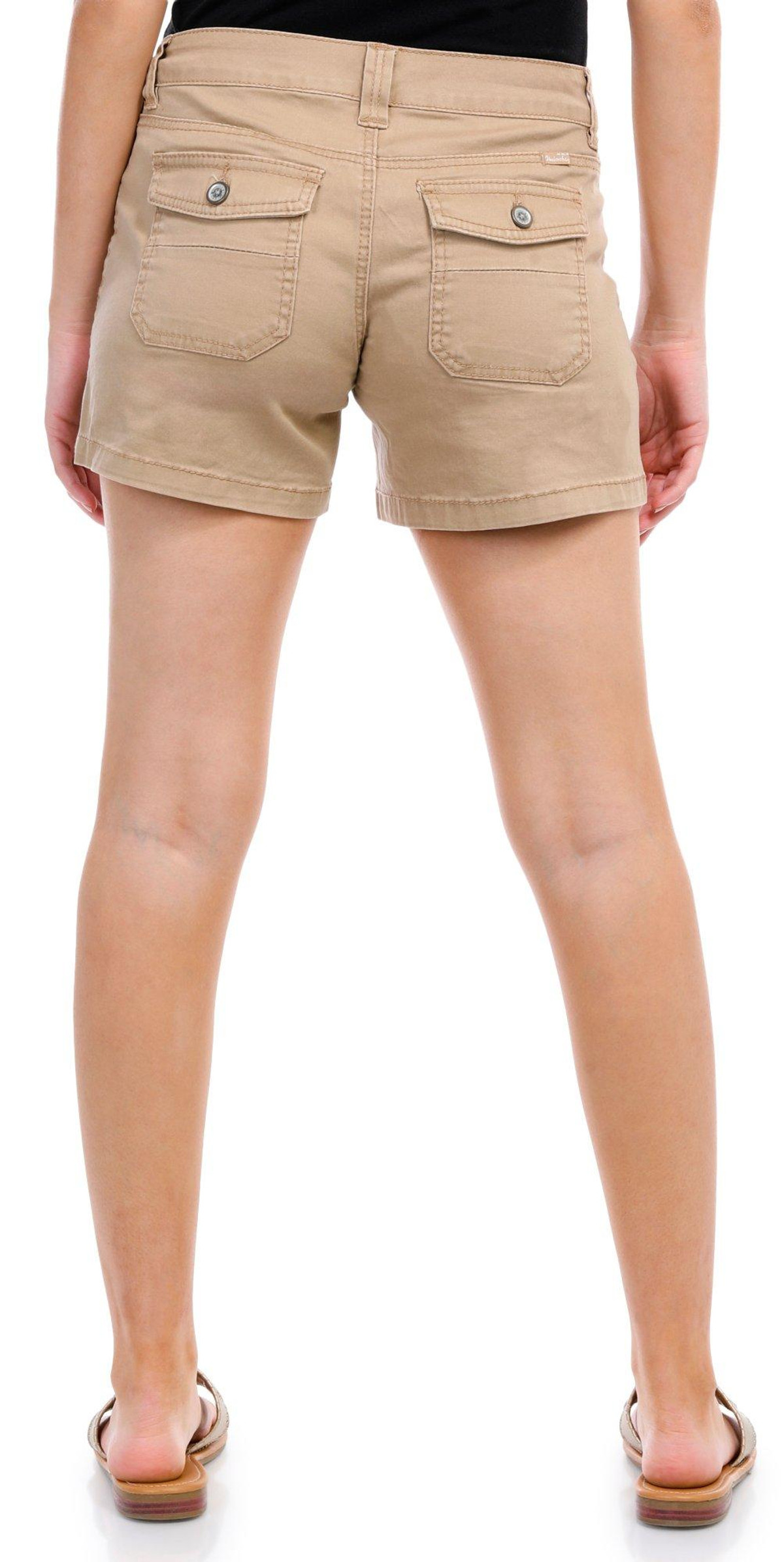 Our stretch twill shorts come in a variety of fabulous colors and feature front button closure with zipper and front porkchop pockets. They also have patch back pockets with flaps and button closures that make them stylishly sleek yet highly practical. The inseam measures approximately 5 in.