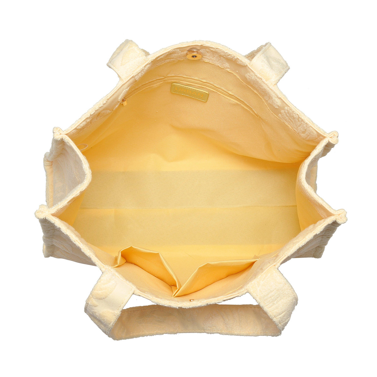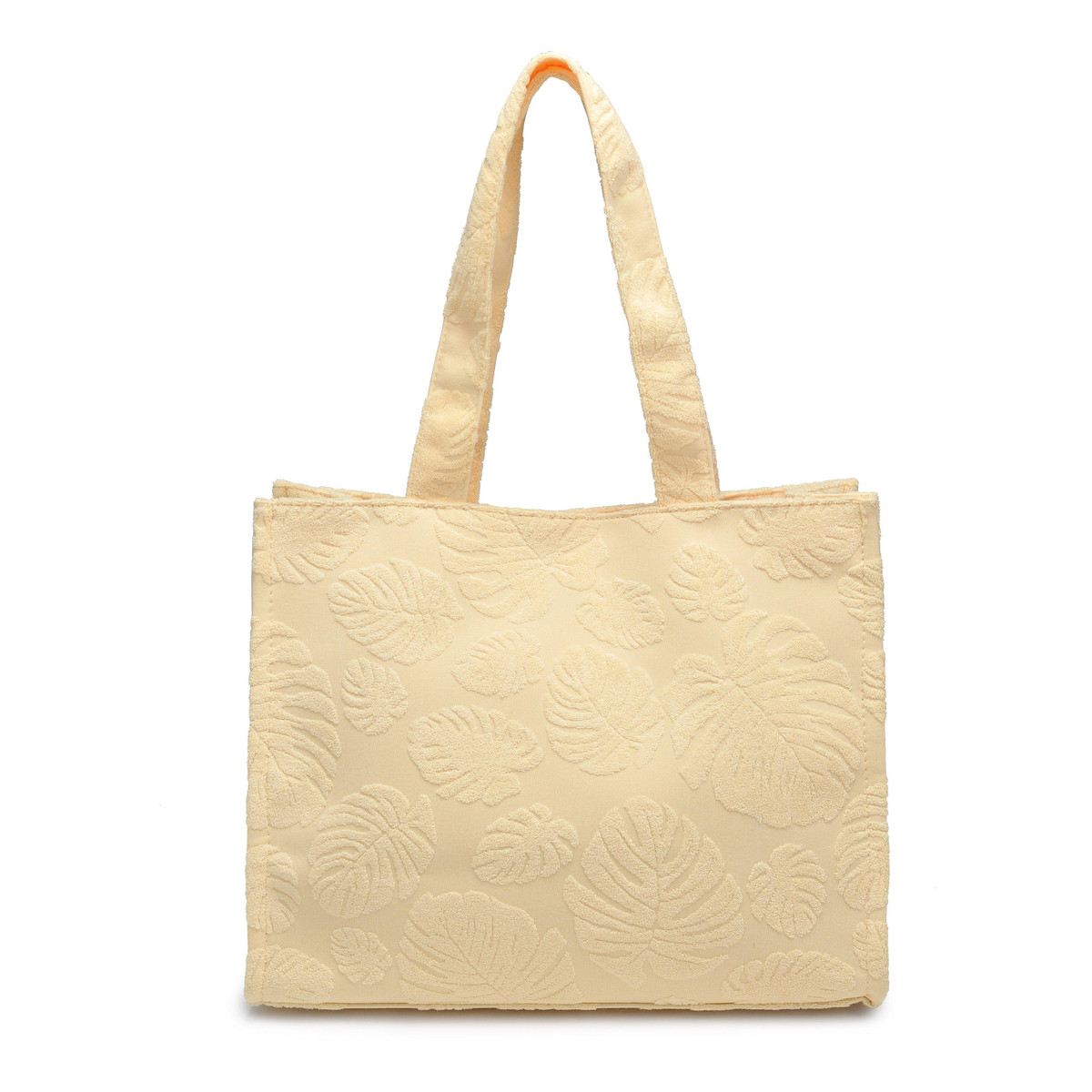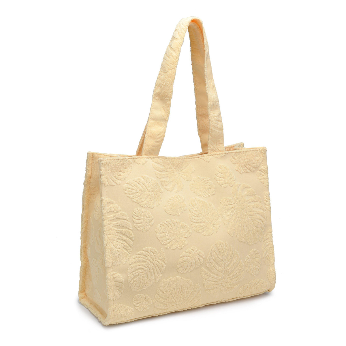 This beach tote features a fun beachside bliss print, dual strap handles, exterior slip pockets, a zipper closure, and an interior pocket. Perfect for the beach or lounging by the pool.
