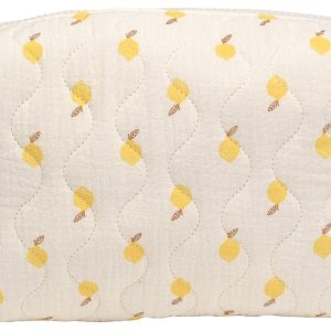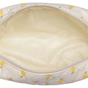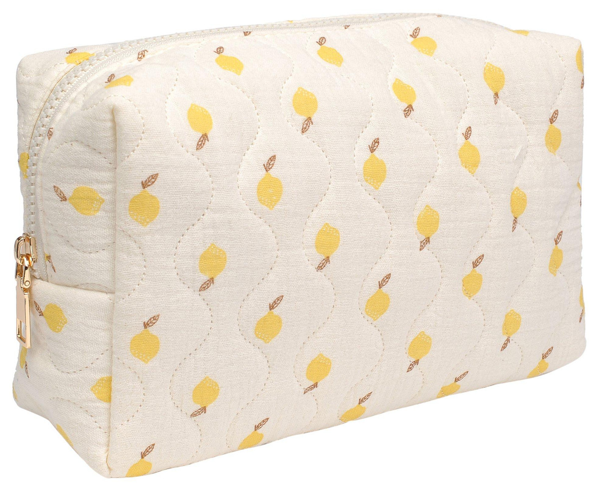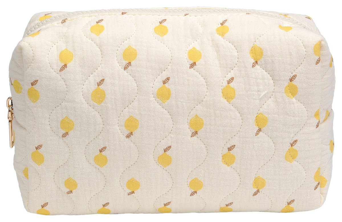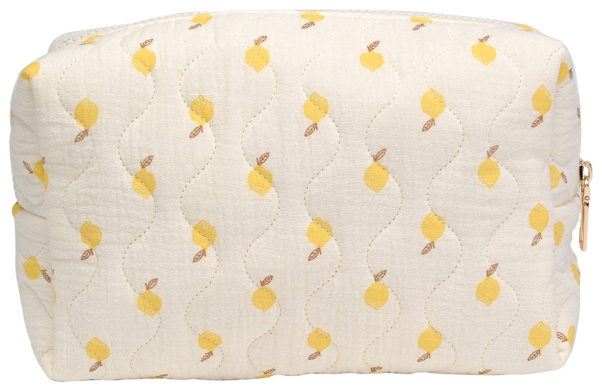 Quilted printed Lemon Patten , zipper pouch, great for cosmetics. Measures: 8.25 x x 3 x 5.13 Inches