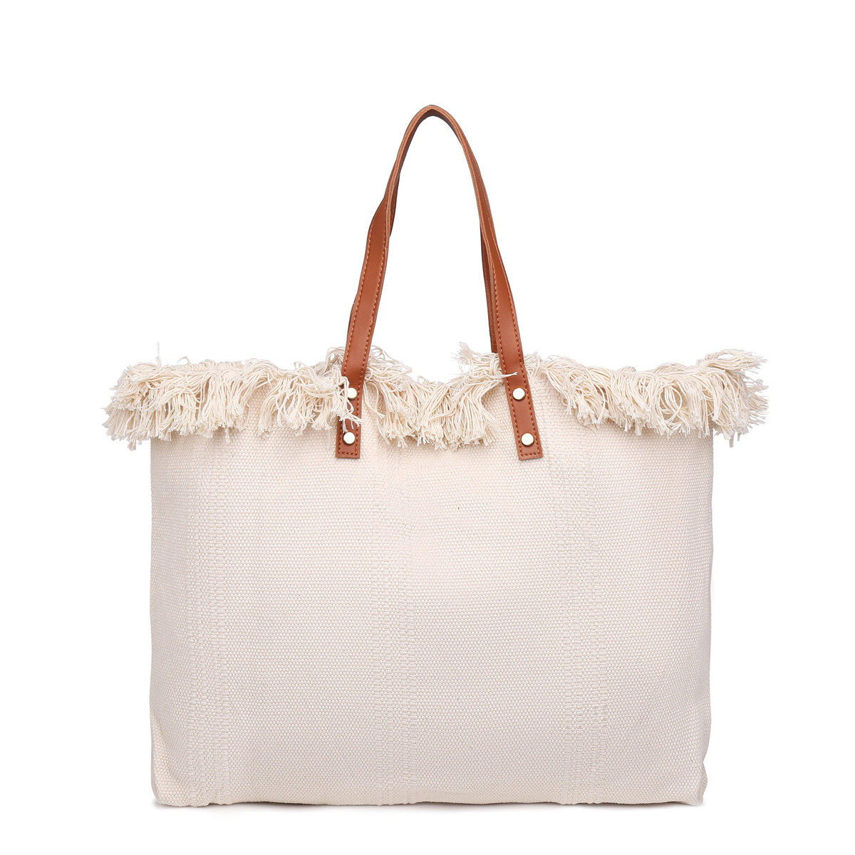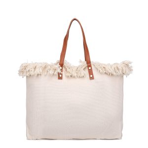 Embrace the season’s warmth with this playful beach tote, festooned with a whimsical fringed trim and a bold script that captures the essence of sunny days. Crafted for spaciousness and durability, it’s the perfect companion for all your summer adventures. Tote measures approximately 19.29 in L x 3.54 in W x 13.78 in H.