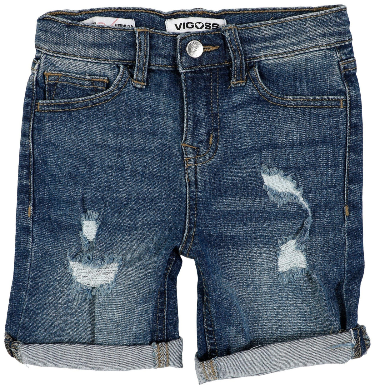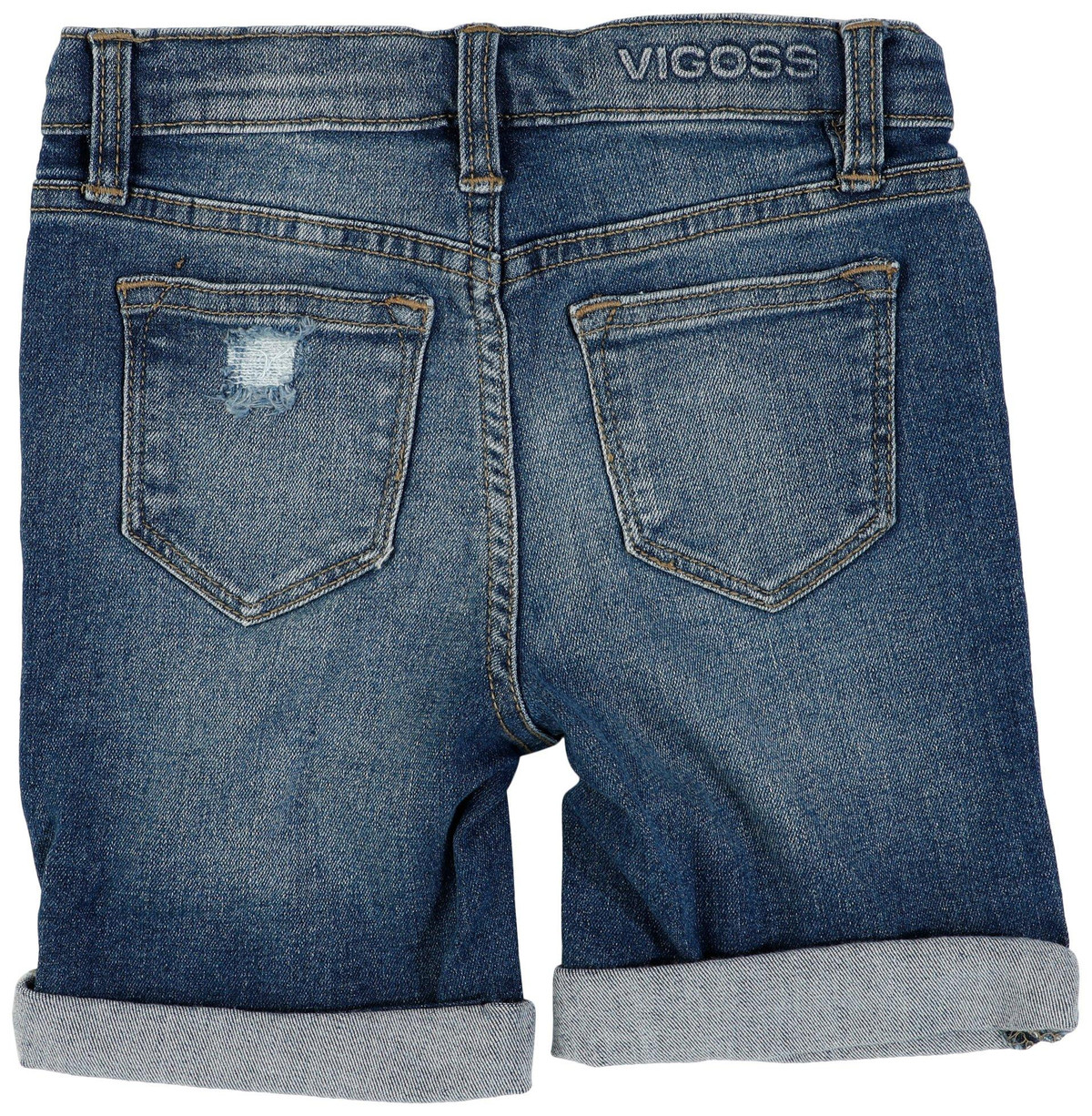 Step up your little ones style game with these Girls High Rise Denim Dad Shorts. Featuring trendy distressed details, these shorts offer a cool, laid-back look perfect for any casual outing. The high-rise design provides a comfortable and flattering fit, while the durable denim ensures long-lasting wear.