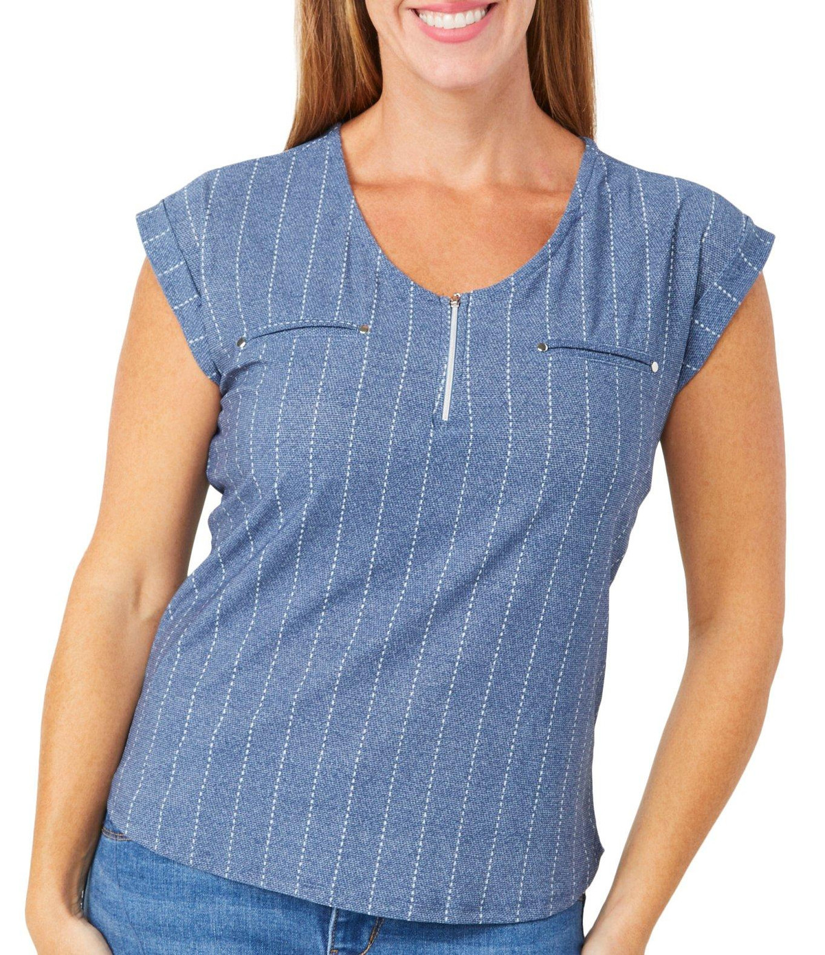 Vintage Rose Women's Short Sleeve Zip Neck Top