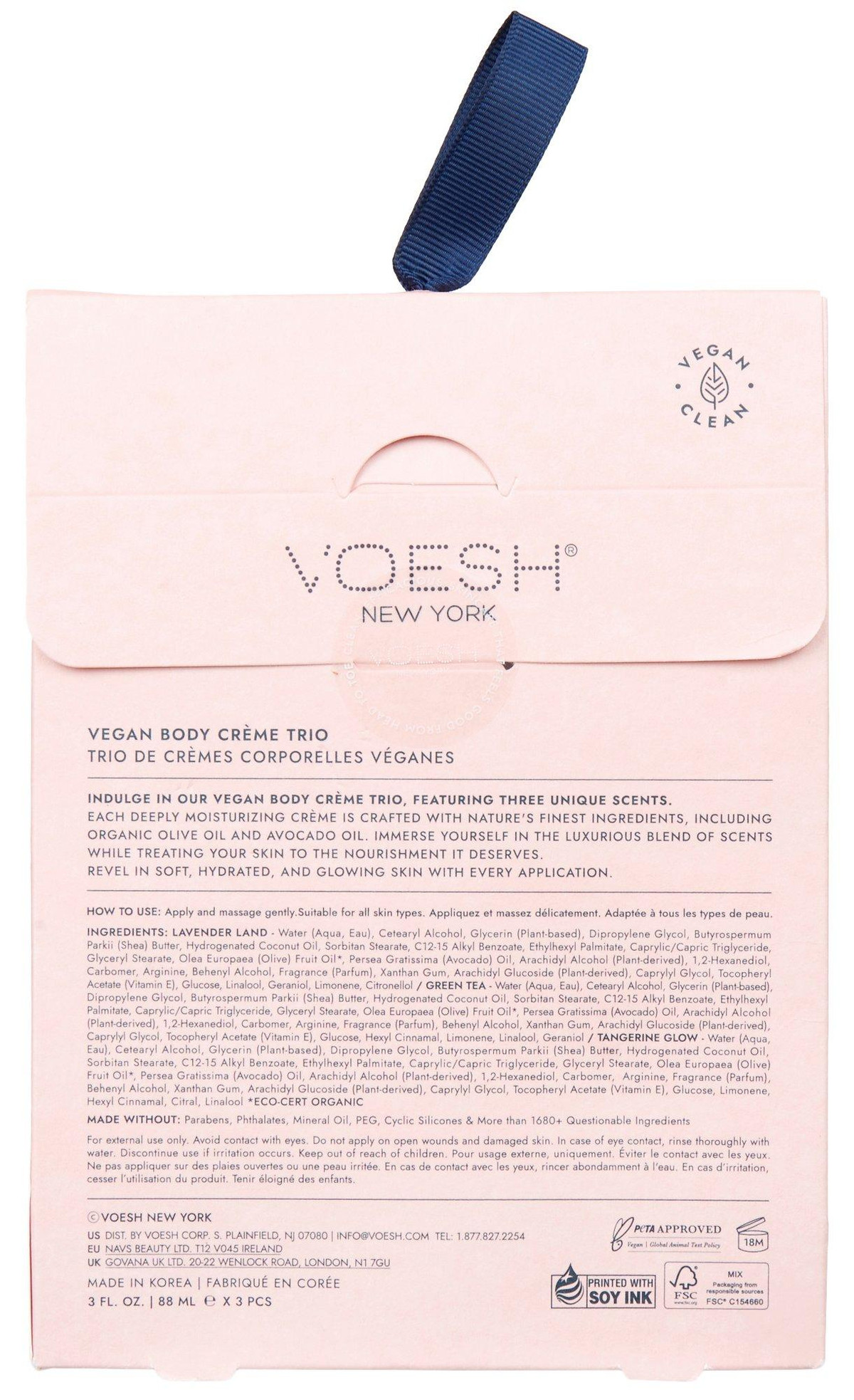 Indulge in this vegan body cream trio featuring three unique scents. Each deeply moisturizing cream is crafted with nature’s finest ingredients, including organic olive oil and avocado oil. Leaves skin soft, hydrated, and skin will glow. Scents include Lavender Land, Green Tea, and Tangerine Glow. 3 FL. OZ. eachTreat yourself or gift it to someone special!