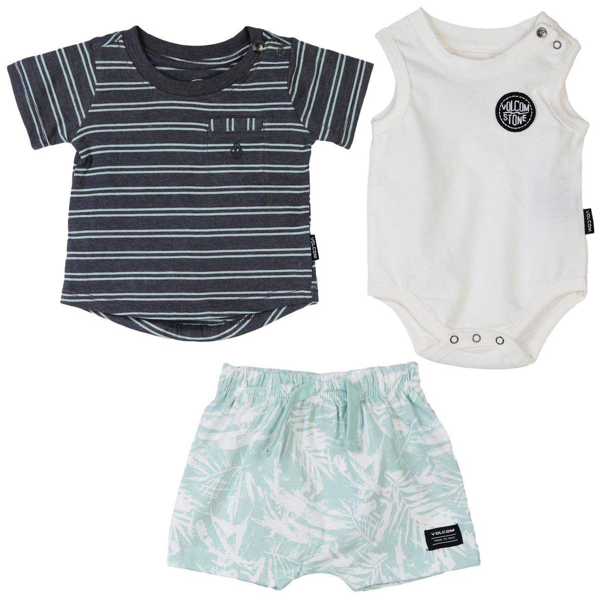 Volcom Baby Boys 3 Pc Bodysuit Shorts T-Shirt Set