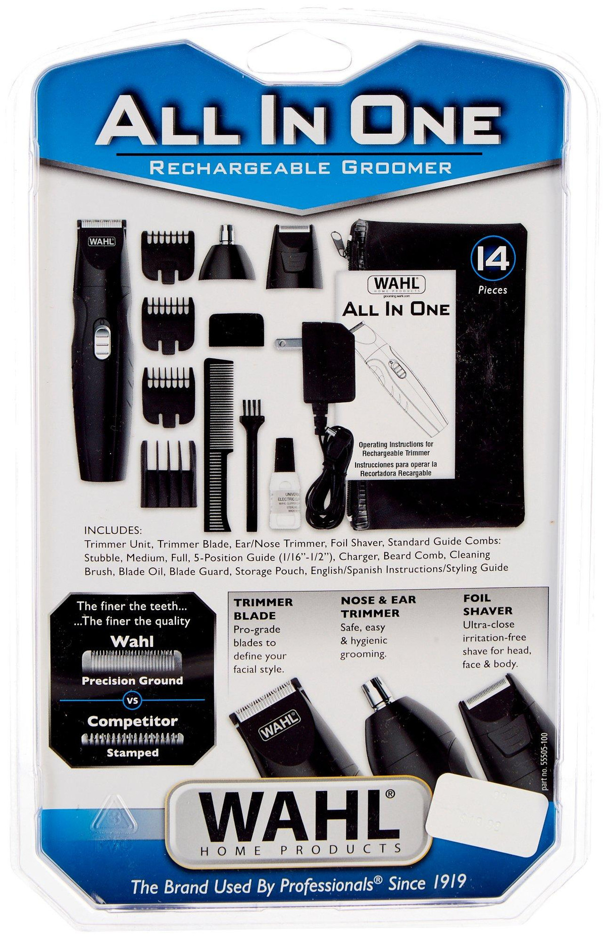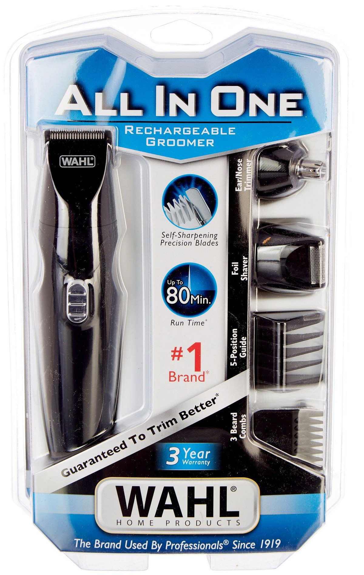 This rechargeable groomer from Wahl features 3 beard combs, 5-position guide, foil shaver, & ear/nose trimmer. Up to 80 minutes run time.
