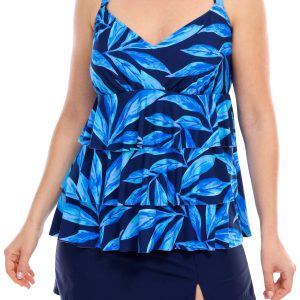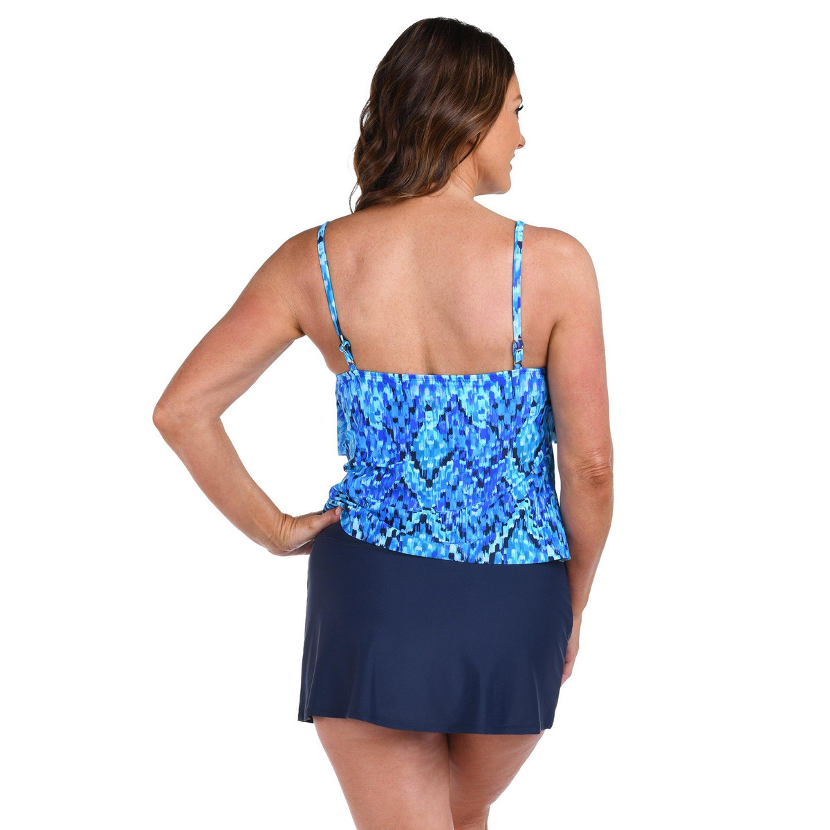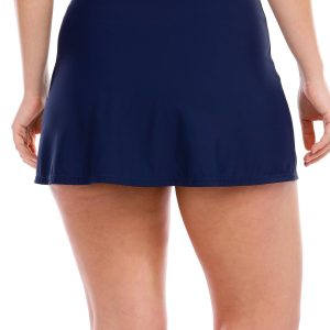 This Maxine of Hollywood wide band skort swim bottom is a versatile addition to your swimwear collection. This full-coverage swim skort features flattering tummy toner to discreetly conceal unwanted excess.. The skirt length measures approximately 13 in. Fabrication 82% nylon, 18% Lycra Xtra Life elastane.