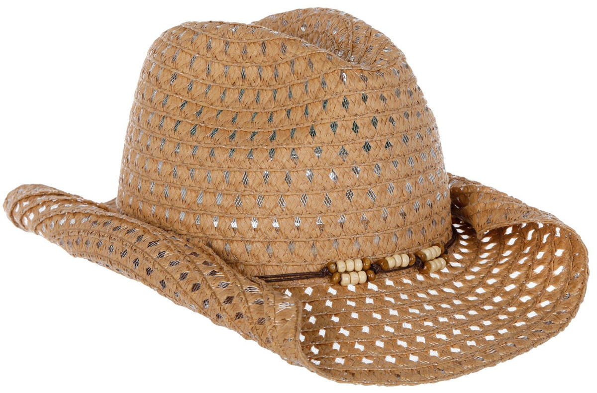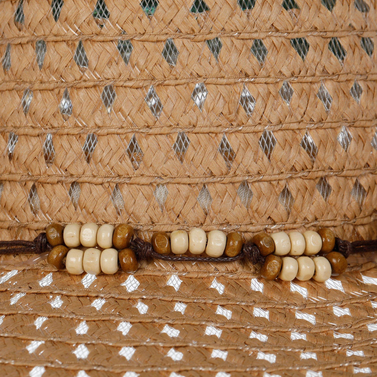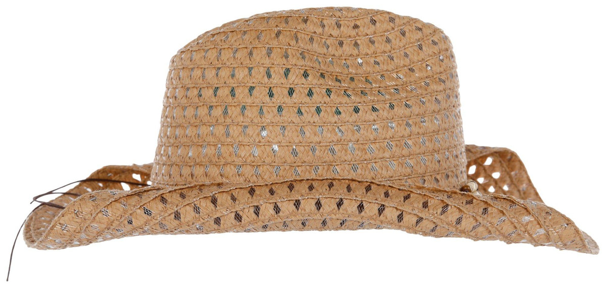 This ladies cowboy hat is crafted from natural straw and accented with decorative beads for a rustic yet stylish look. Lightweight and breathable, it is perfect for sunny days and outdoor events, adding charm to any outfit.