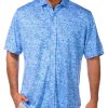 This men’s polo features soft, stretchy fabric with an allover Hawaiian flower print. Designed for comfort and vibrant style from casual outings to coastal escapes. Fabrication is 95% polyester and 5% spandex.
