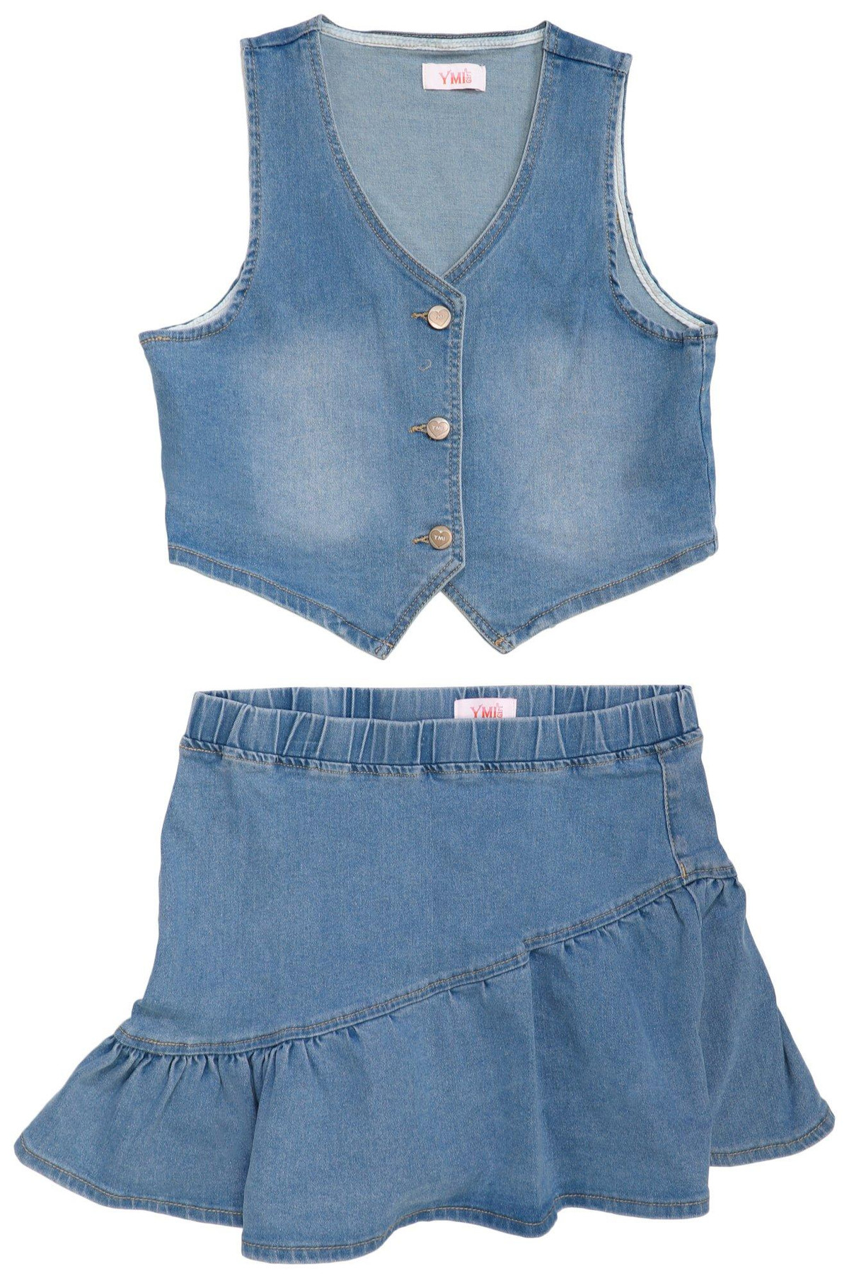 YMI Big Girls 2 Pc Denim Vest & Pull-On Skirt Set