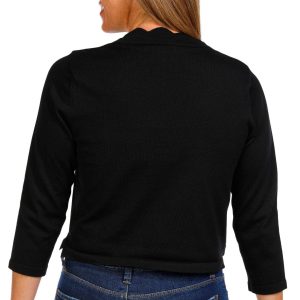 Add a touch of elegance to your wardrobe with our Womens 3/4 Sleeve Cardigan. Featuring a charming scalloped hem, this cardigan is crafted from a soft polyester and rayon blend for a comfortable fit. The open front design and short length make it a versatile layering piece, perfect for any season. Whether dressing up or down, this cardigan adds a stylish flair to any outfit.