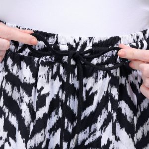 Introducing the Women’s Drawstring Wide Leg Pants, designed for both comfort and style. Made from a blend of polyester and spandex, these pants feature a chic black and white print that adds a sophisticated touch to any outfit. The drawstring waistband ensures a customizable fit, while the wide leg design offers a relaxed and flattering silhouette. With a 29-inch inseam, these pants are perfect for casual outings or relaxed weekends, making them a versatile addition to your wardrobe.