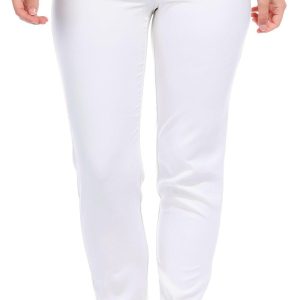 These womens ankle pants feature a solid color with a sleek slim fit and 28 inch inseam. Made of polyester and spandex they offer stretch and comfort with a pull on waistband for easy wear and a smooth silhouette.