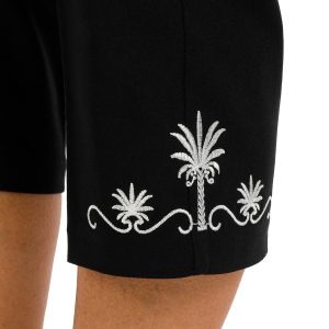 These women’s crop pants feature a pull on waistband and a solid color with an embroidered hem. With a straight leg cut, they offer a comfortable fit and a touch of detail for a polished everyday look.